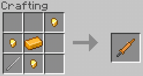 And now, let’s get to the last series of weapons offered by this addon. These are heave gold weapons and their main ingredient is heavy gold ingots.