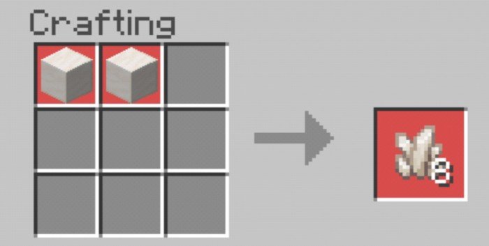 This addon brings a nice collection of crafting recipes that will help you obtain the following items without killing any mobs and without having to search for hours in places that are difficult to access.